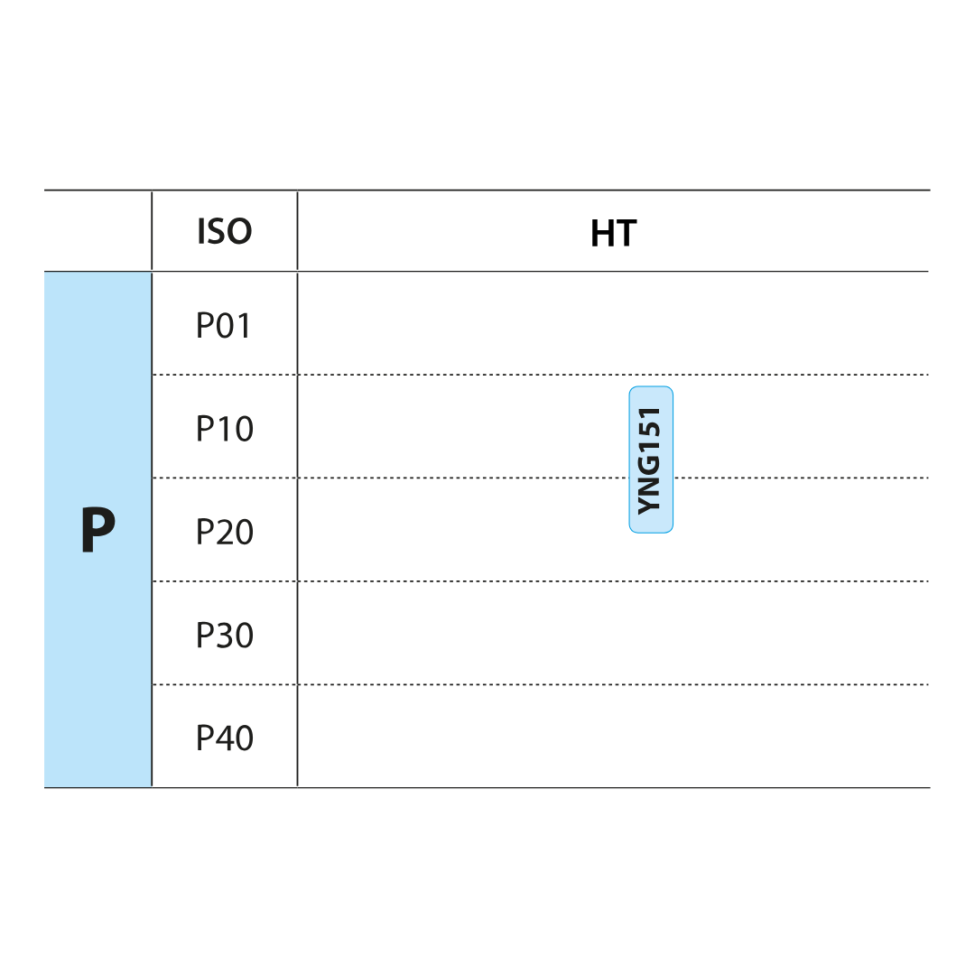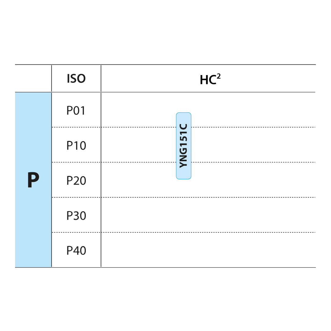 Uncoated P05–P15 cermet grade for fine finishing operation of steel and stainless steel. Good resistance against plastic deformation for good surface finishing.