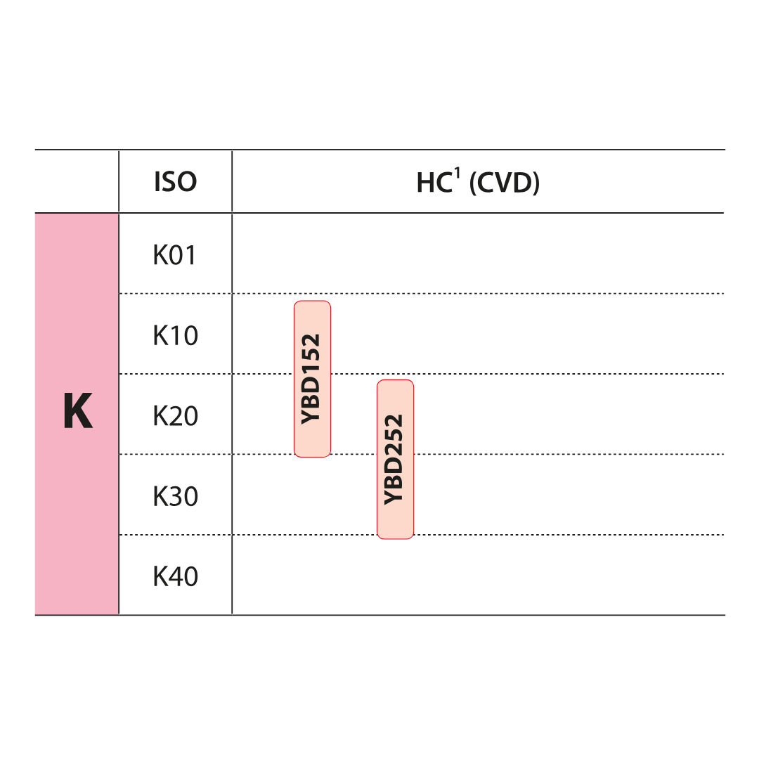 CVD coated P20–P35 carbide grade for medium operation to roughing of steel at higher cutting speed. Optimal performance of wear resistance and toughness for a wide application field.